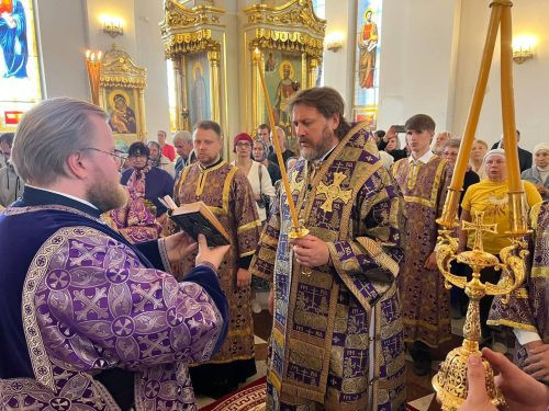 14 августа 2024 года, в первый день Успенского поста, в праздник Происхождение Честных Древ Животворящего Креста Господня, архиепископ Одинцовский и Красногорский Фома совершил Божественную Литургию в Георгиевском соборе г. Одинцово.