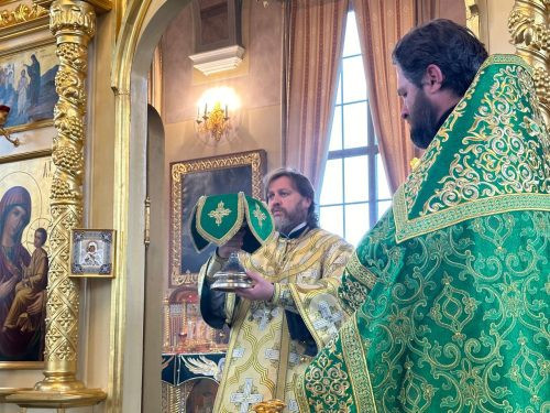 За Литургией Преосвященнейшему владыке сослужил настоятель храма протоиерей Вадим Поликопа.