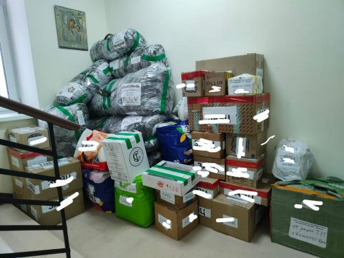 В состав груза вошли маскировочные сети, изготовленные руками прихожанок храма, а также продукты, медикаменты и одежда.
