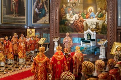 В день тезоименитства Патриарха Кирилла архиепископ Фома сослужил за Литургией в Храме Христа Спасителя