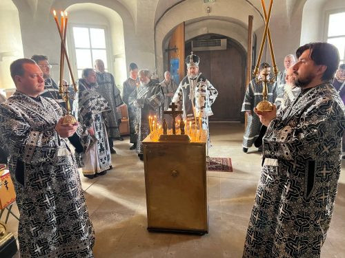 По окончании Литургии Преждеосвященных Даров владыка Фома совершил заупокойную литию о новопреставленном клирике храма диаконе Георгии Малкове и первом старосте храма после возобновления богослужений в 1992 году Иоанне Дымове.