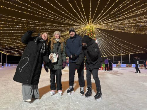 Ребята собрались на катке, расположенном в «Парке имени 50-летия Октября» и весело провели время, катаясь на коньках.