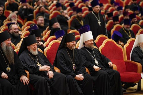 Святейший Патриарх Кирилл приветствовал собравшихся и представил основной доклад. Завершая выступление, Святейший Владыка пригласил занять места в президиуме собрания митрополита Крутицкого и Коломенского Павла и архиепископа Подольского и Люберецкого Аксия.