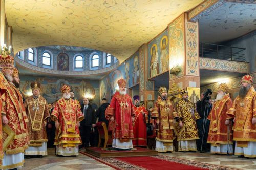 В Троицком храме Святейший Патриарх Кирилл совершил Божественную литургию и возглавил хиротонию архимандрита Ермогена (Корчукова) во епископа Туранского, викария Кызыльской епархии. Его Святейшеству сослужил, в том числе митрополит архиепископ Одинцовский и Красногорский Фома, руководитель Административного секретариата Московской Патриархии.