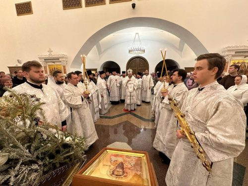 13 января 2024 года, накануне памяти Святителя Василия Великого, архиепископ Одинцовский и Красногорский Фома совершил всенощное бдение в Богоявленском кафедральном соборе в Елохове.
