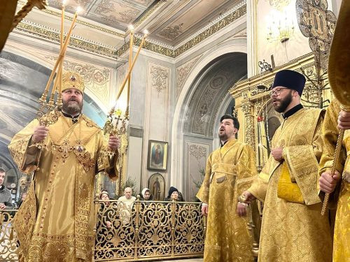 8 января 2024 года, в день попразднства Рождества Христова, праздник Собора Пресвятой Богородицы, день памяти праведного Иосифа Обручника, Давида царя и Иакова, брата Господня архиепископ Одинцовский и Красногорский Фома совершил Божественную литургию в Богоявленском кафедральном соборе в Елохове.