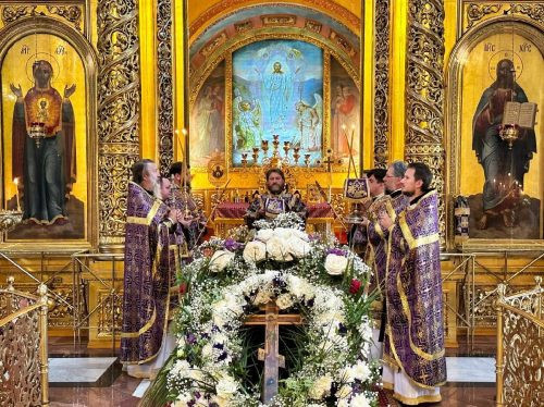 По окончании Литургии владыка Фома и духовенство собора совершили славление и поклонились Кресту Господню.