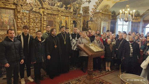 Группа посетила верхний и нижний храмы, наслаждаясь прекрасной архитектурой Нарышкинского барокко, помолились у икон, которые сохранились не тронутыми с XVII века, приложились к святыням храма.