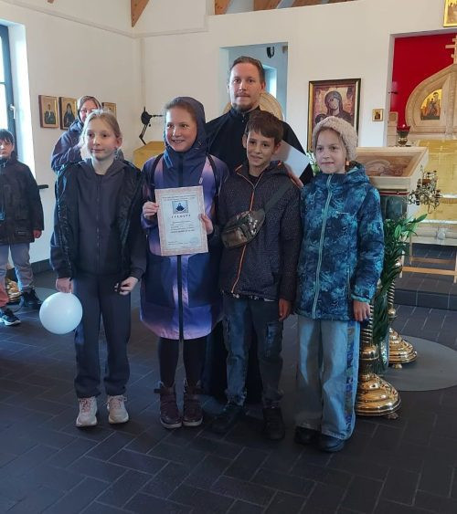 Четыре команды учащихся школ Тропарево-Никулино пришли в храм для участие в эстафете. Ребята отвечали на вопросы о святых и истории Русской Православной Церкви.