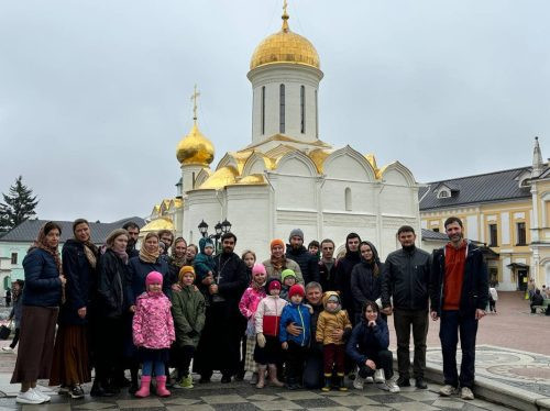 Паломничество началось с краткой молитвы у стен храма ранним утром, и к 9 часам группа прибыла в Сергиев Посад. Прежде всего паломники приложились к иконе Пресвятой Троицы работы Андрея Рублева, мощам преп. Сергия (по просьбе настоятеля храма иерея Иоанна Новикова для ребят и их сопровождающих рака была открыта), а также к частицам мощей многочисленных святых, которые находятся в Серапионовой палате – бывшей келье преп. Сергия, где он сподобился явления Пресвятой Богородицы.