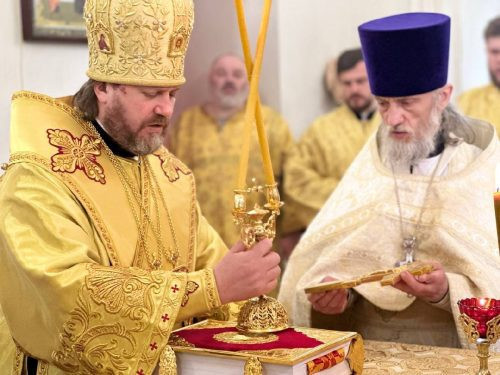 По сугубой ектении архиепископ Фома вознес молитву о святой Руси. По окончании богослужения он обратился к собравшимся со словами проповеди.