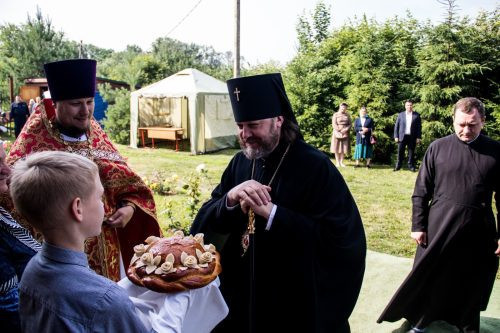 Архиепископ Фома обратился к собравшимся с архипастырским словом. Благочинный Шаховского церковного округа иерей Андрей Тарасов поблагодарил Его Высокопреосвященство за посещение прихода и подарил фотокопию нового образа новомучеников Шаховских.