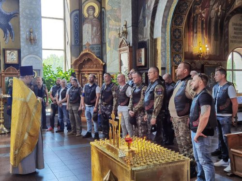 Настоятель храма вмч. Георгия Победоносца совершил водосвятный молебен для участников мотопробега к 80-летию освобождения Пскова