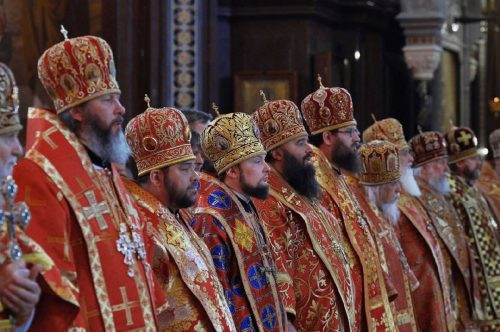 На сугубой ектении были вознесены особые прошения, Предстоятель Русской Церкви прочитал молитву о Святой Руси.