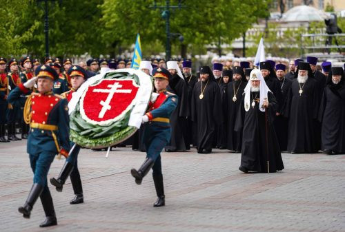 А вечером того же дня в канун Дня Победы архиепископ Фома принял участие в торжественной церемонии возложение венка к могиле Неизвестного солдата у Кремлевской стены.