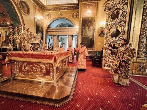 А вечером того же дня, в канун памяти апостола и евангелиста Марка, архиепископ Одинцовский и Красногорский Фома совершил полиелейное богослужение в храме святителя Николая в Хамовниках.