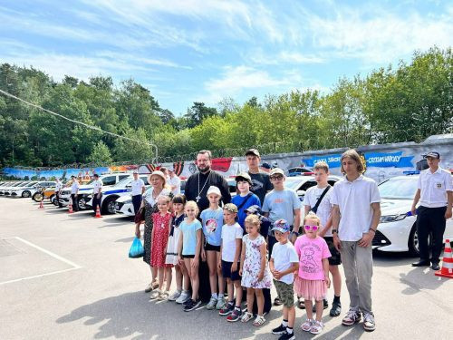 3 июля 2024 г., в День ГАИ, учащиеся воскресной школы храма иконы Божией Матери «Неувядаемый Цвет» в Рублево посетили 2 СБ ДПС ГИБДД на спецтрассе ГУ МВД РОССИИ по городу Москве.
