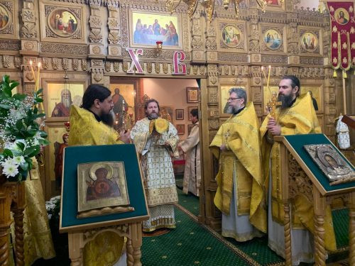 Литургию возглавил архиепископ Одинцовский и Красногорский Фома. Ему сослужили клирики Богоявленского собора.