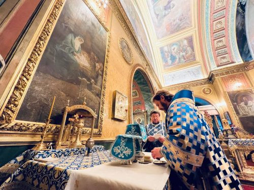 По окончании литургии епископ Фома возглавил соборное пение духовенством храма канона ко Пресвятой Богородице.