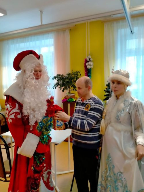 В дни Рождественских Святок волонтеры социальной службы храма Иверской иконы Божией Матери на Мичуринском проспекте поздравили подопечных инвалидов колясочников в психоневрологическическом интернате «Филимонки».