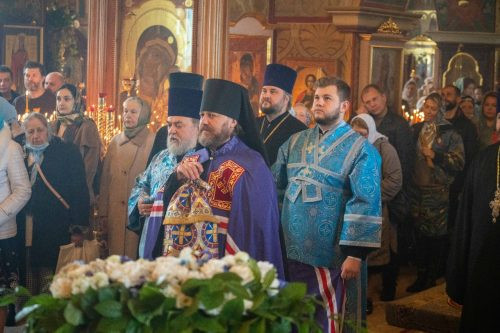 Литургию в престольный праздник в храме Рождества Пресвятой Богородицы в Крылатском возглавил епископ Фома