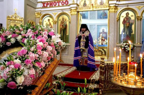 Его Преосвященству сослужило духовенство епархии. По сугубой ектении владыка Фома вознес молитву о восстановлении мира на Украине.