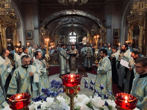 Вечером 28 августа 2022 года в Богоявленском кафедральном соборе в Елохове епископ Одинцовский и Красногорский Фома совершил утреню с чином Погребения Пресвятой Богородицы.