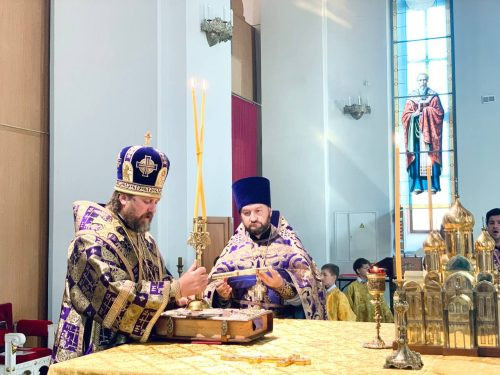 14 августа 2022 года, в первый день Успенского поста, в праздник Происхождение Честных Древ Животворящего Креста Господня, епископ Одинцовский и Красногорский Фома совершил Божественную литургию в Георгиевском соборе города Одинцово.
