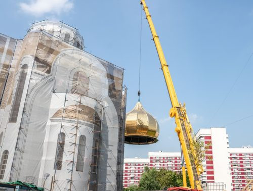 В районе Крылатское освятили и подняли купол с крестом на каменный храм князя Владимира