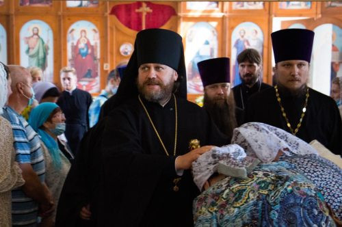 По окончании службы отец Андрей напомнил историю возведения храма и поблагодарил владыку за совместную службу.