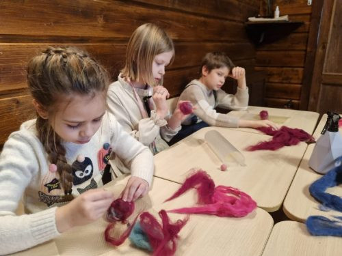 Ребята пришли в детский православный клуб после окончания своих занятий. Вместе с педагогом творческой студии они сделали своими руками несколько интересных ёлочных игрушек ,используя технику валяния шерсти. Но предварительно дети подробно познакомились с этим видом прикладного искусства, узнали его историю и способы применения.