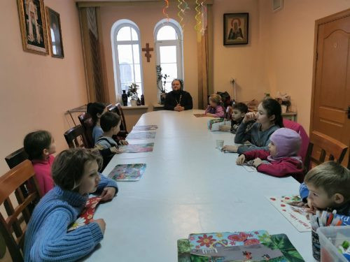 В воскресной школе храма сщмч. Ермогена в Крылатском настоятель храма провел урок Закона Божьего