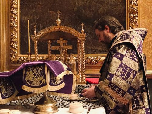 21 апреля 2022 года, в Четверг Страстной Седмицы, епископ Одинцовский и Красногорский Фома совершил Литургию Василия Великого в Богоявленском кафедральном соборе в Елохове.