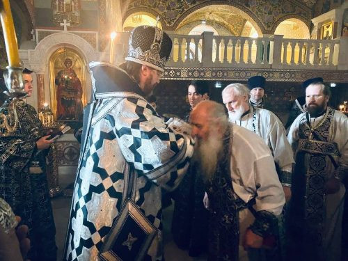 В ходе богослужения епископ Фома вознёс молитву о мире на Украине. Владыка также наградил священников епархии, удостоенных к Празднику св. Пасхи правом ношения палицы.