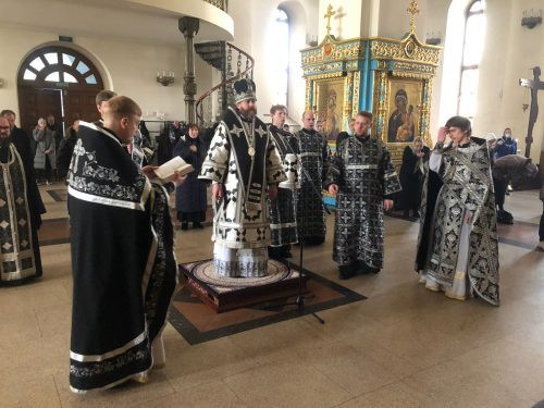 5 апреля 2022 года, во вторник пятой седмицы Великого поста, епископ Одинцовский и Красногорский Фома совершил в Георгиевском соборе города Одинцово Литургию Преждеосвященных Даров.