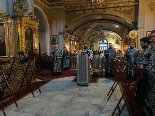 Вечером в воскресенье Крестопоклонной недели епископ Одинцовский и Красногорский Фома совершил Пассию в Богоявленском соборе. Владыке сослужили клирики собора.