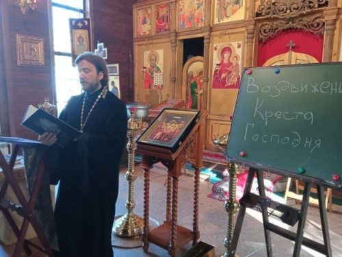 29 сентября 2023 года настоятель храма святителя Спиридона Тримифунтского в Фили-Давыдково протоиерей Илия Кочуров провел урок для школьников ГБОУ СОШ «Интеграл» на тему: «Праздник Воздвижения Честного и Животворящего Креста Господня».