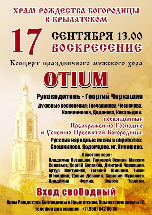 Мужской хор храма Рождества Пресвятой Богородицы приглашает на концерт 17 сентября. Он начнется в 13:00 в нашем храме.