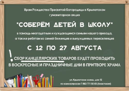 Храм Рождества Пресвятой Богородицы в Крылатском объявляет гуманитарную акцию «Соберëм детей в школу»