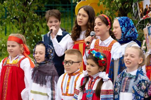 Прекрасные песни, трогательные стихи, посвящённые празднику Пятидесятницы, весёлые танцевальные номера и много добрых напутственных слов наполнили сегодня храмовую площадь по окончании праздничной Литургии.