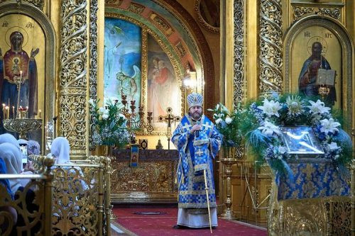 Епископ Одинцовский и Красногорский поздравил клир и паству с праздником и обратился ко всем со словом проповеди о покрове и помощи Пресвятой Богородицы роду христианскому.