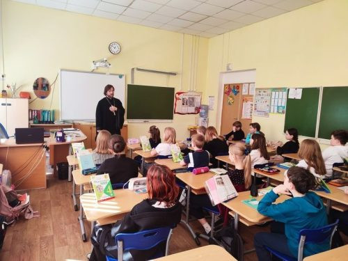 Настоятель храма святителя Спиридона Тримифунтского в Фили-Давыдково протоиерей Илия Кочуров провёл уроки по предмету «Основы православной культуры» для 4-х классов в учебном центре «Интеграл».