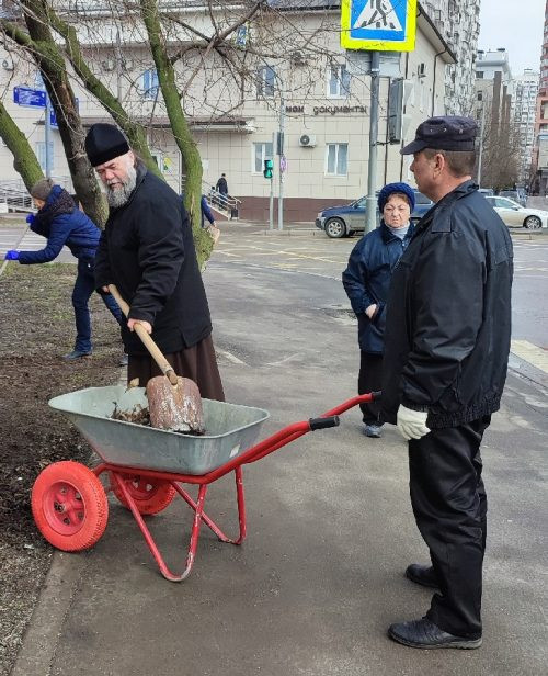 В храме прп. Андрея Рублева в Раменках состоялся первый весенний субботник, который возглавил настоятель храма протоиерей Андрей Галухин. Во время субботника прихожане очищали забор вокруг храма.