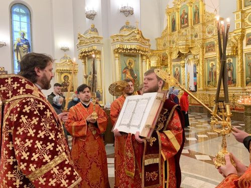 В канун престольного праздника владыке Фоме сослужили клирики собора.