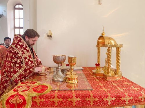 4 мая 2021 года, во вторник Светлой Седмицы Божественную литургию в малый престольный праздник в Георгиевском соборе города Одинцова возглавил епископ Одинцовский и Красногорский Фома.