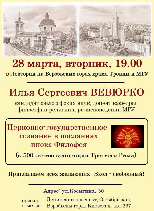 Лекторий храма Троицы на Воробьевых горах приглашает на встречу к 500-летию концепции Третьего Рима