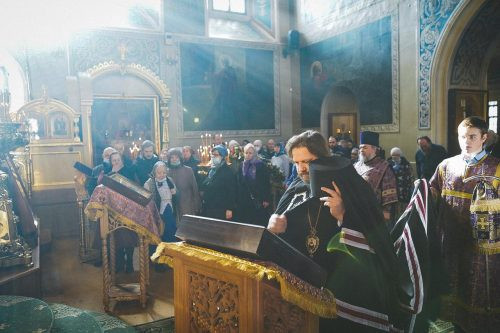 Божественную литургию в малый престольный праздник в храме, настоятелем которого является, возглавил епископ Павлово-Посадский Фома, управляющий Западным викариатством.