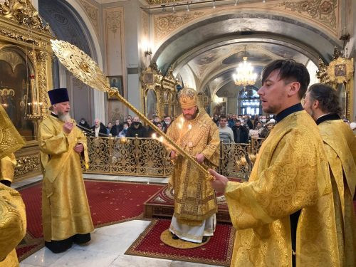 В Неделю сыропустную епископ Павлово-Посадский Фома совершил Литургию в Богоявленском соборе