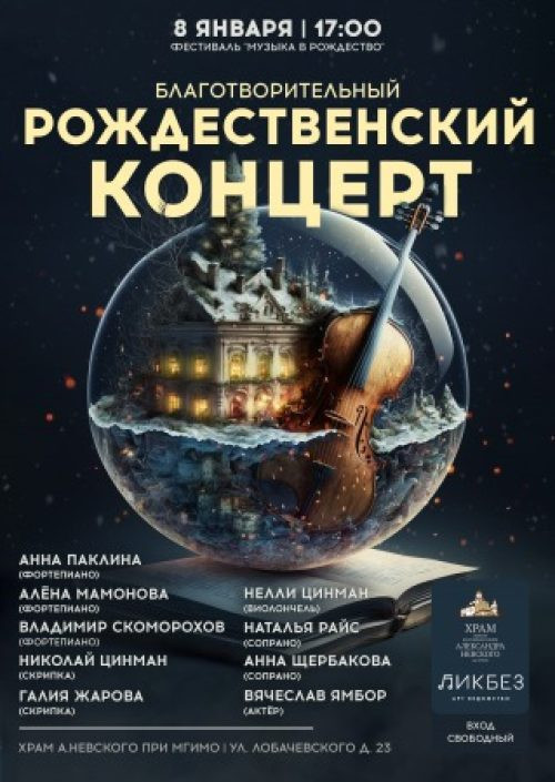 Светлым праздничным вечером 8 января храм святого благоверного князя Александра Невского при МГИМО приглашает на благотворительный Рождественский концерт от проекта «Арт-ведомство ЛИКБЕЗ»!