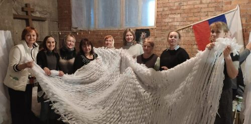 Добровольцы храма прп. Андрея Рублева плетут маскировочные сетки в помощь военным СВО